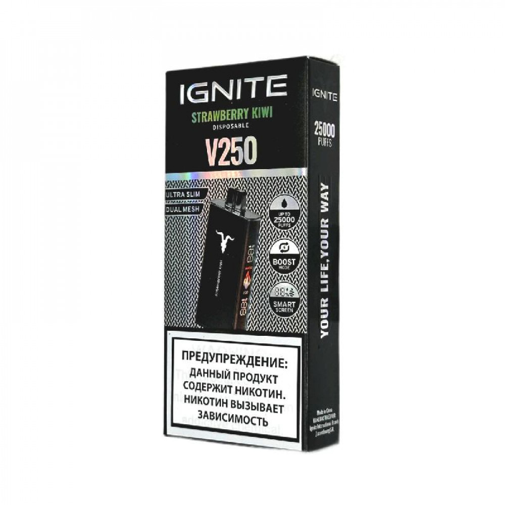 Электронная сигарета Ignite V250 Black 25000 - Strawberry Kiwi (Клубника киви) - купить в Боготоле
