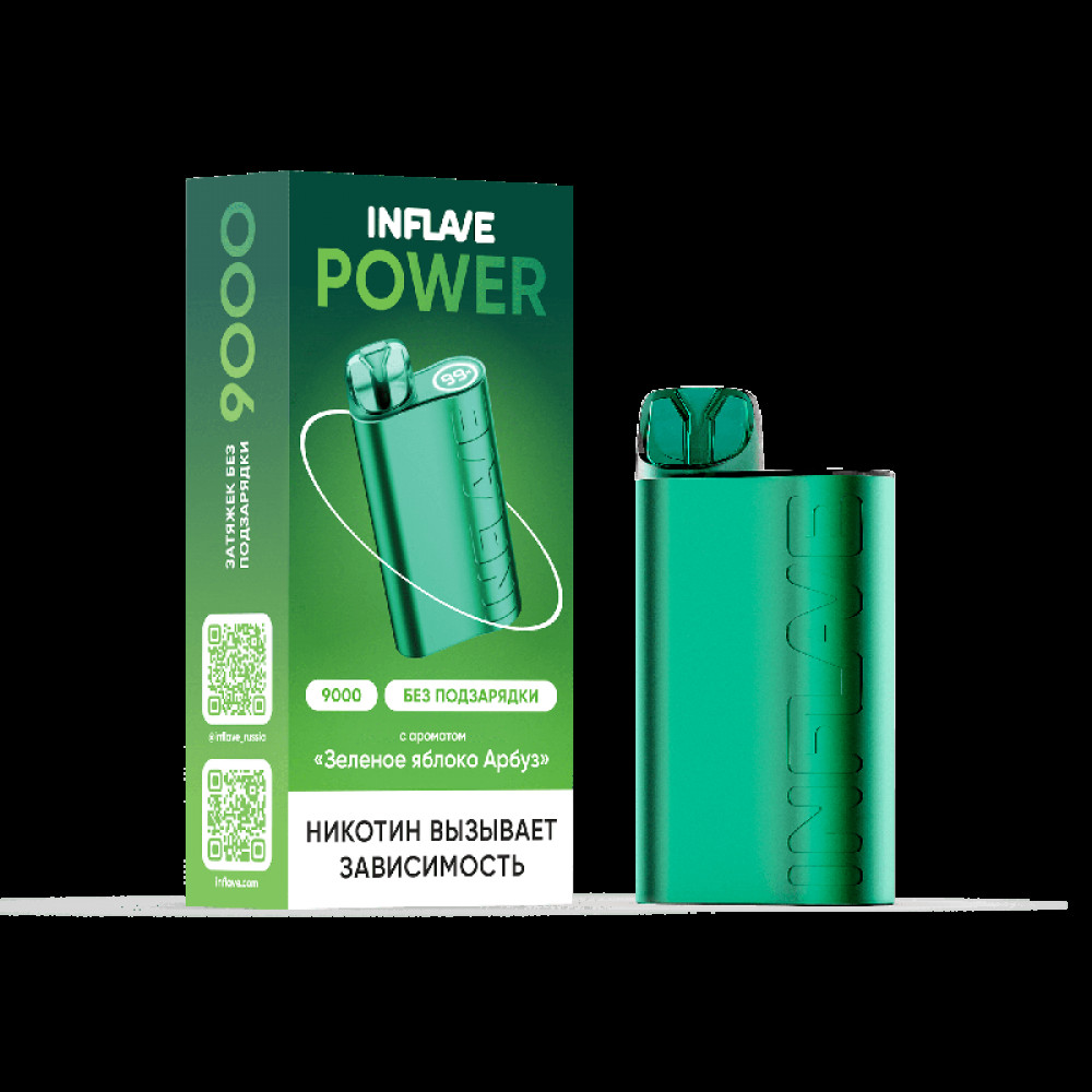 Электронная сигарета INFLAVE POWER 9000 затяжек Зеленое Яблоко Арбуз - купить в Боготоле